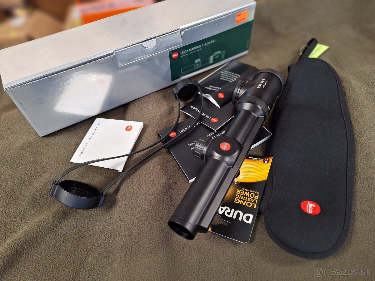 Puškohľad Leica Magnus s rozlíšením 1-6,3x24i predstavuje vysoko kvalitný model optiky, ktorá je mimoriadne vhodná na spoločné poľovačky. Jeho vysoké rozlíšenie a veľké zorné pole posúvajú všetky možné hranice na úplne inú úroveň. Pri pohľade do puškohľadu zažijete jedinečný obraz a pestrosť farieb. Puškohlad je úplne nový s plnou zárukou - 10 rokov. Pultová cena 2560 euro. Zväčšenie: 1 - 6,3 x Zoom: 6,3x Zorné pole na 100 m: 44 m až 6,5 m Očný reliéf: > 90 mm Výstupná pupila: 12,4 - 3,8 mm Bez paralaxy: 100 m Kompenzácia dioptrií: –4/+3 dpt Povlak na šošovkách: AquaDura Priepustnosť svetla: 92 % Možnosť montáže: 30 mm krúžky / lišta Zeiss Korekcia bodu nárazu: 1 klik = 1 cm/100 m (~ 1⁄3 MOA), 200 x 140 cm Závit predného šošovkového filtra: M 28 x 0,75 mm Kríž: L-3D Vodotesnosť: do 4 m Plnenie: dusíkom Osvetlenie zámernej osnovy: áno, bodka Automatické vypnutie: aktivácia polohou alebo pohybom, 3 min., ± 75 ° Batéria: 1x CR2032 Dĺžka: 272 mm Hmotnosť: 544 g